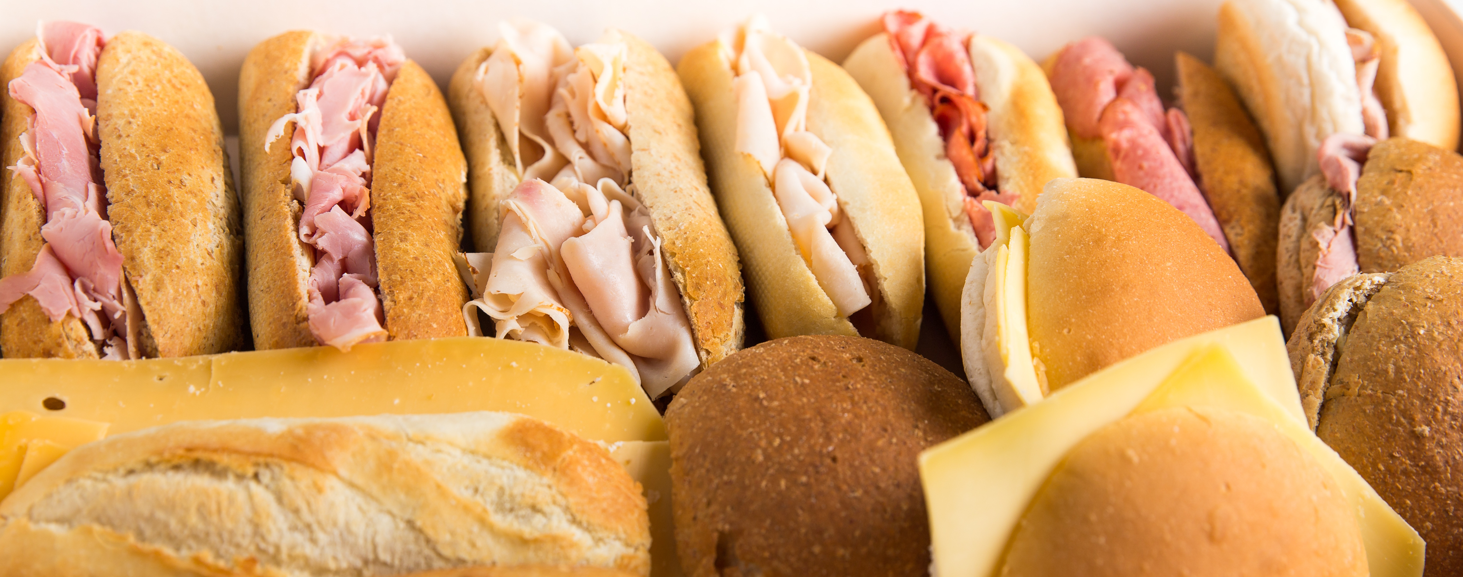 10 luxe harde bollen wit/bruin met divers eenvoudig beleg zoals ham, div. kaas, cervelaat, kipfilet, chorizo, eiersalade enz.