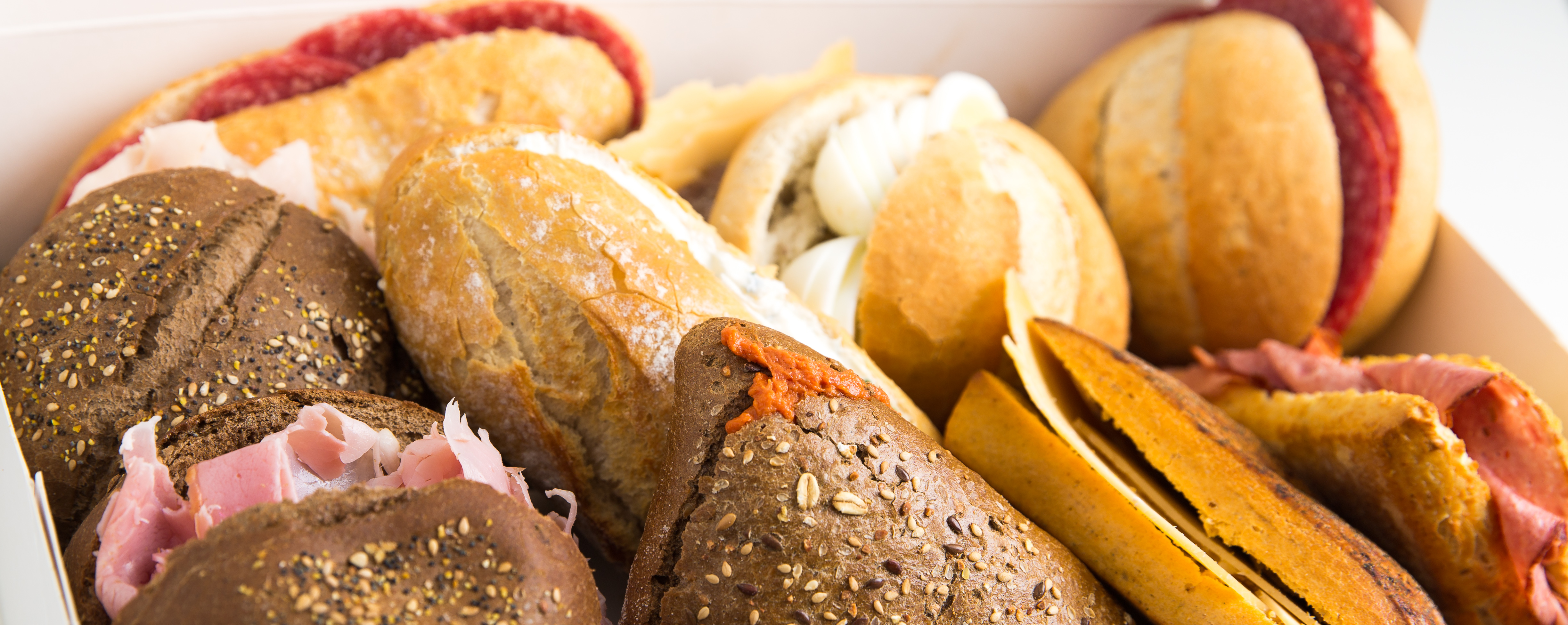 10 witte/ bruine bollen/pistoletjes met luxe beleg zoals gezond, rosbief speciaal, kipfilet speciaal, file speciaal enz.( zie speciale broodjes bij assortiment)